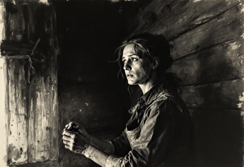 I swung my legs out of the cot, the dirt floor cool under my bare feet. I dressed in the dark – moleskin trousers stiff with yesterday’s sweat, the flannel shirt that had been patched more times than I could count. I didn’t wake her. There was no need. She’d be up soon enough to see to the little ones, to haul water and fight the dust that settled on everything we owned.